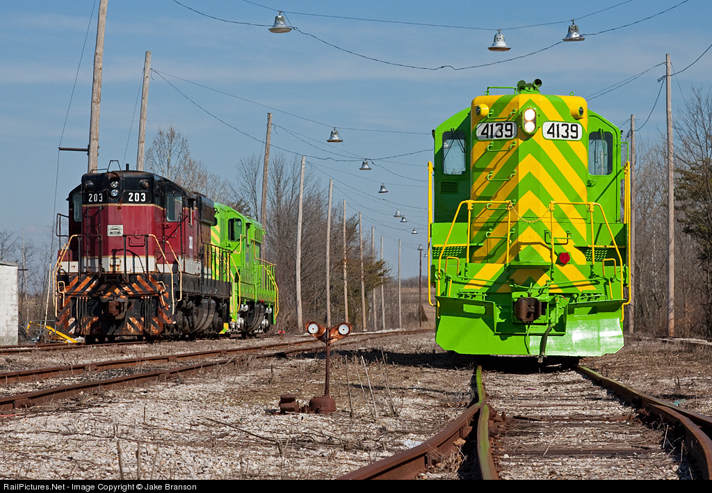 Bright green RRC 4139 rests in Respondek's Boonville, IN, yard while a pair of old SD9s, one still in AWW paint, take in the action. Thanks for the great day Terry!