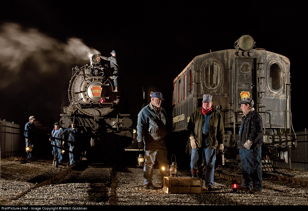 Harrison, New Jersey - 1928: PRR #3750 makes a stop at the Manhattan Transfer station and gets a little attention from the crew as passengers make the transfer to one of the Pennsylvania Railroad's electric trains (a DD-1) which will continue on through two recently built tunnels under the Hudson River and into Manhattan. Some passengers remain on the steam powered train which will continue on to Exchange Place in Jersey City, NJ. An incredible look back at a possible could've been, recreated compliments of the RRMP and Lerro Productions.