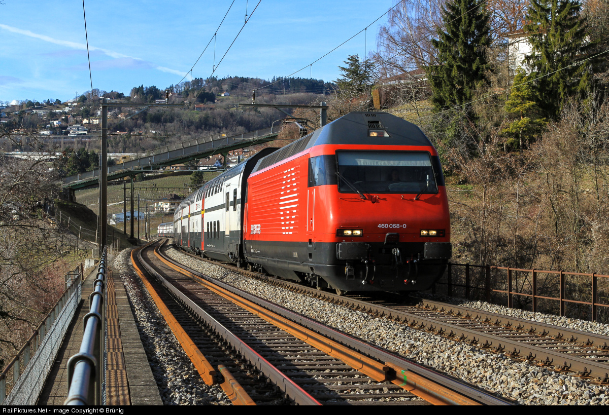 | During the 83rd international Motorshow (Salon de l'auto) in Geneva, several extra trains running across Switzerland. Those trains always are well frequented. Here we see the return of 30735 to Zurich. The train consists of five coaches first class, one dining car and seven second class coaches - a total of 1'360 places. |