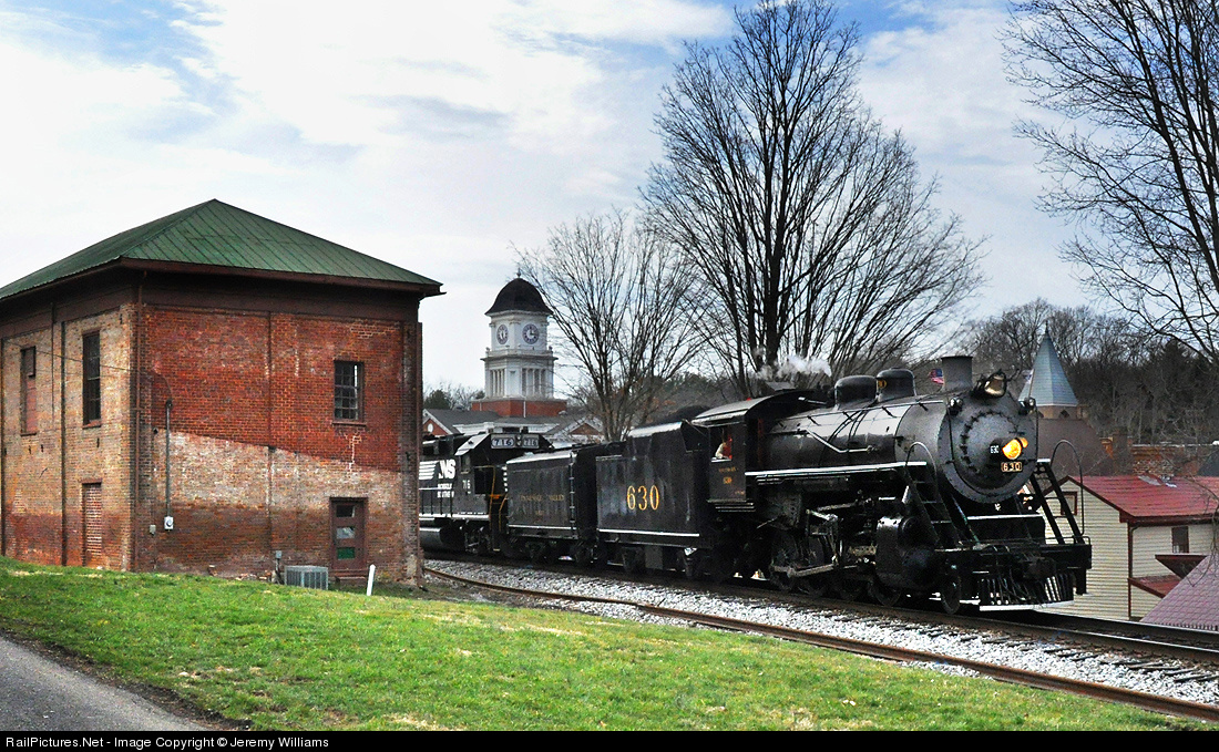 SOU 630 eases through Jonesborough en route to Bristol, VA. The Washington County, Tennessee court house stands tall in the background. Thanks to Ron Flanary for all the help with the logistics and getting this shot! Also, thanks to NS and the TVRM for hosting this excursion.