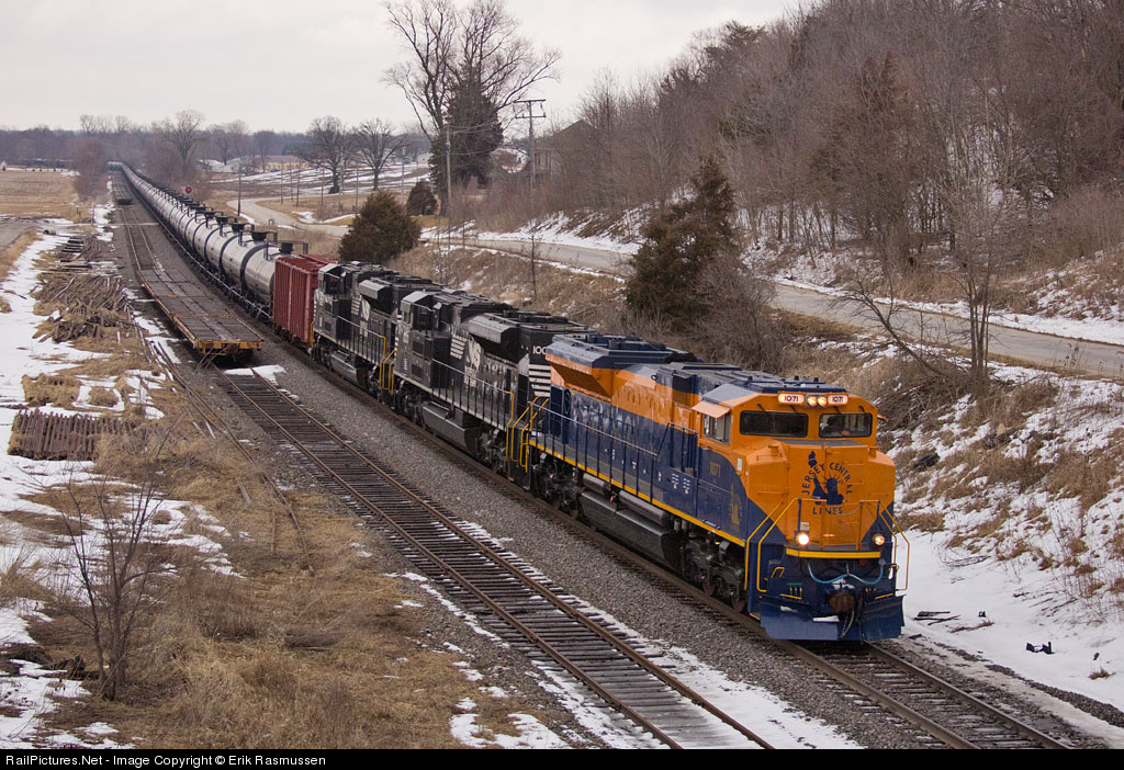 The Central Railroad of New Jersey heritage leads 2 other NS SD70ACe's on oil loads down the "Peavine" bound for the Union Pacific in St Louis.
