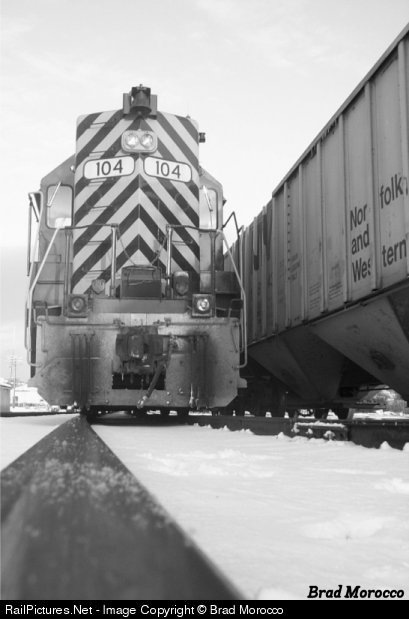 104 Idels in the Yard, next to a Norfolk and Western hopper.