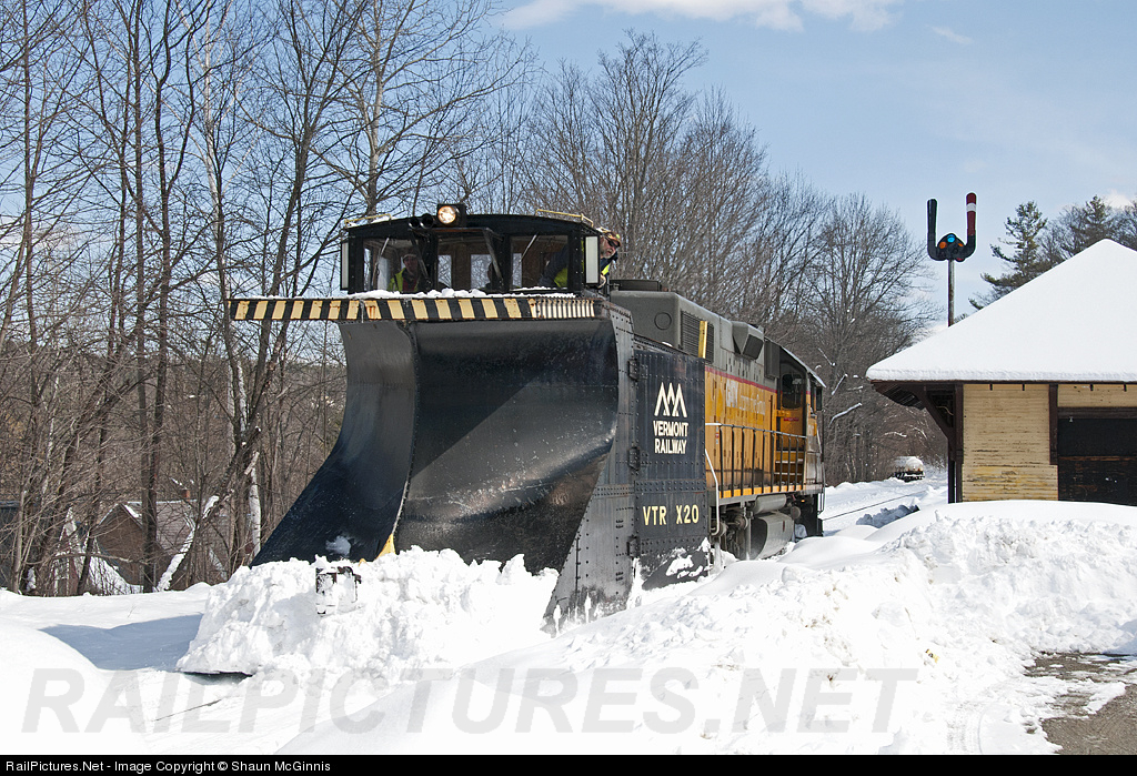 | For the third time this year VRS ran a plow extra over the Green Mountain. Shoved by the GMTX 2189, VTR plow X20 is photographed passing the Ludlow station. |