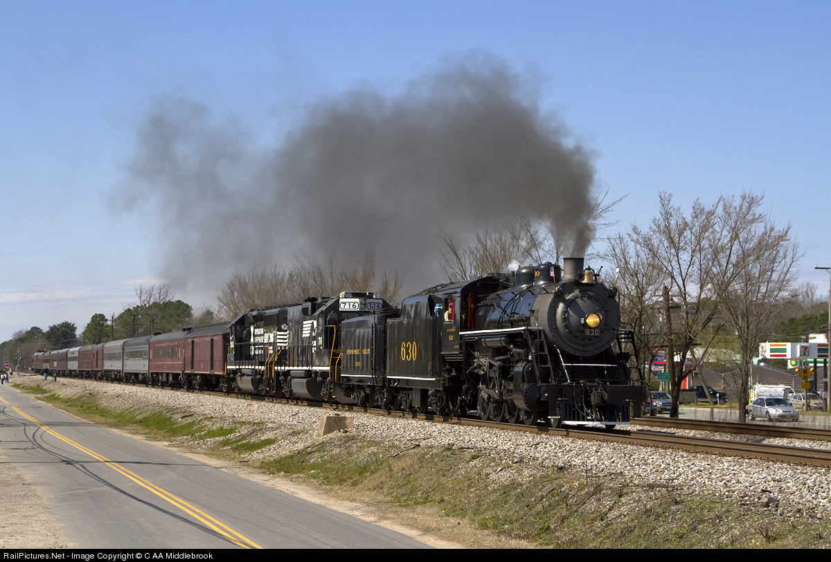| A rare event and great attraction for all ages today, the Southern 630 having left Petersburg enroute back to Norfolk, Virginia passes through the small town of Waverly. March 2013. |