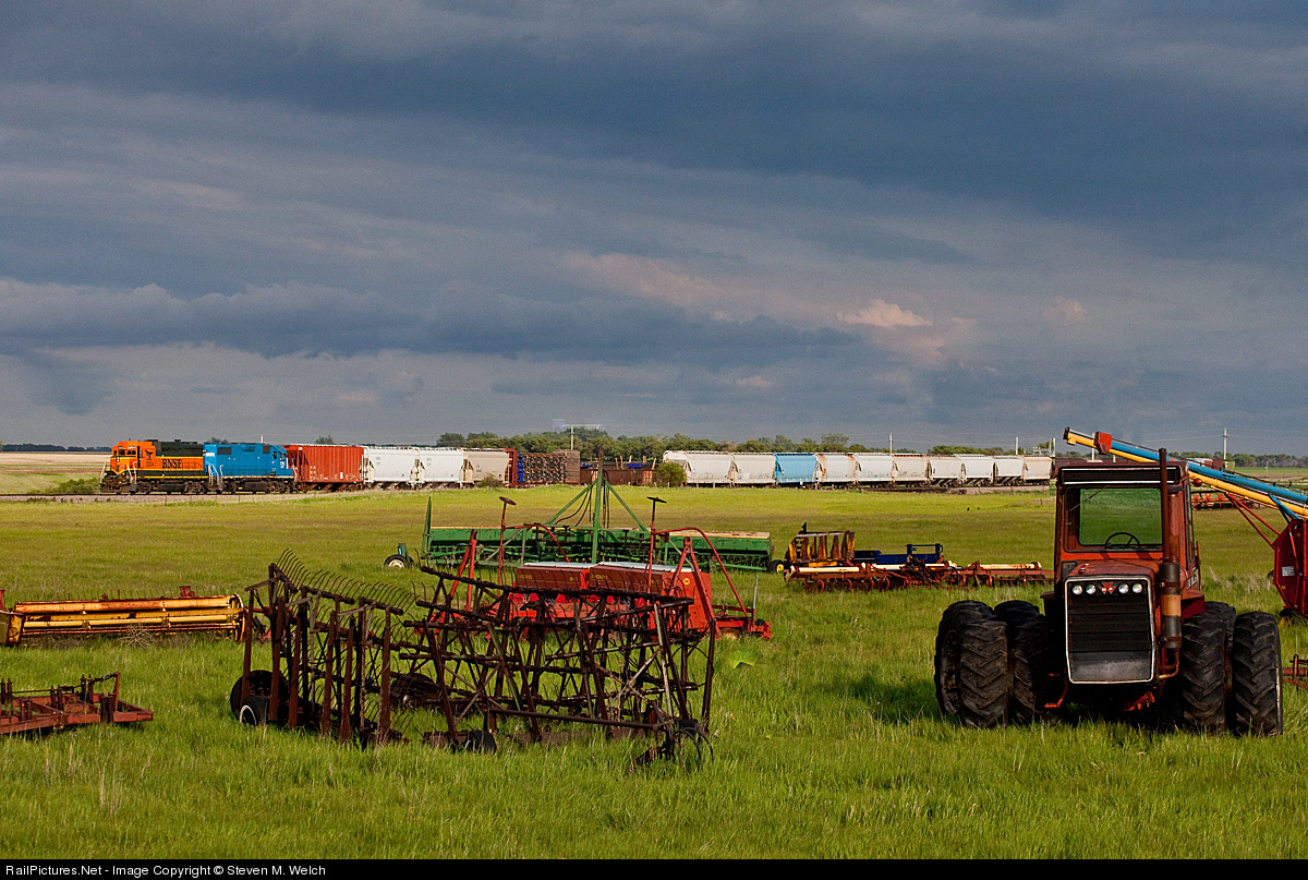 With Winter dragging on into late March and most likely early April, I had to dig up a shot from June to remember what Summer is like! Thunderstorms brew to the East while a H1 GP30-body leads the Northgate Local into Kenaston, ND past some idled farm equipment.