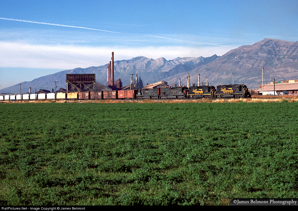 Rio Grande lumber drag No. 148 is bracketed by agriculture and industrial might at Geneva Steel. At this point in time, the mill was shut down but reactivation by local ownership was days away. The mill closed down for good in 2001 and nothing remains of it today.