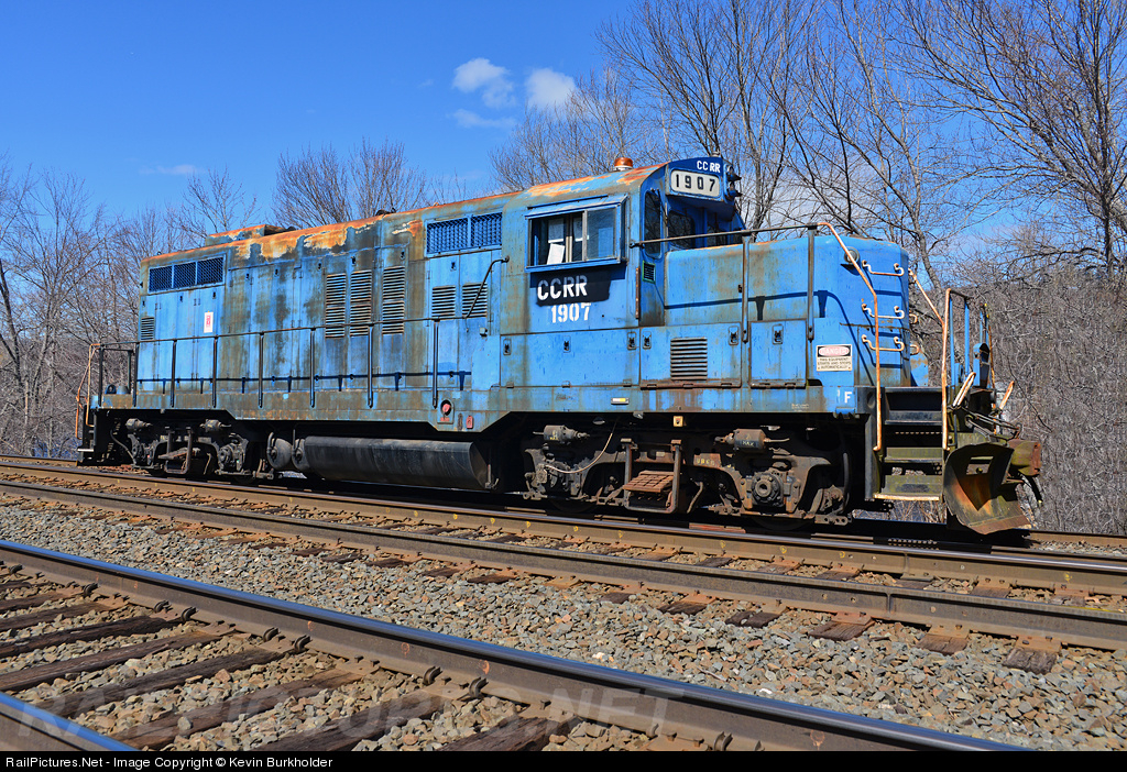 | The first non-Alco for the Claremont Concord Railroad is enroute to the company's West Lebanon, New Hampshire operation to replace the Alco S-4 104 there. CCRR 1907 was originally constructed as a Northern Pacific GP9 322 and has served for the Burlington Northern, Con-Agra and LVR. |