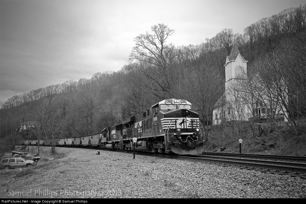 It's a quiet and dreary evening in the small town of Elkhorn, W.Va., until the sound of a heavy loaded coal drags permeates the air with the sound of engines in Notch 8, shattering the stillness. Here, No. 82G is pictured passing a small church situated trackside, as the train climbs grueling 1.5% Elkhorn Grade with 110 loads in tow.