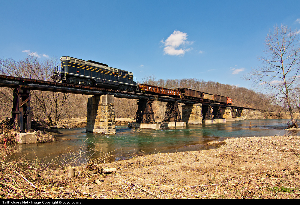 A Southbound local crosses over the South Branch of the Potomac at Twin Bridges. This structure replaced the original bridge lost in the flood of 1985. A Potomac Eagle / South Branch Valley / Chase Gunnoe Charter.