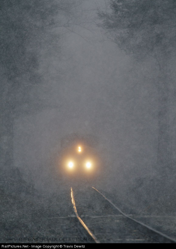 Very heavy snowfall creates a dream like world as CSX 5006 comes through the tunnel of trees near Pax, West Virginia.