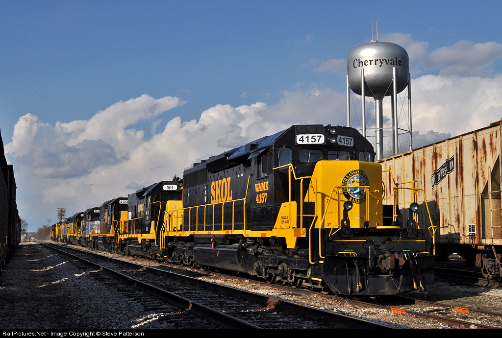 The boys on the South Kansas & Oklahoma RR got the weekend off --- eight units of various paint schemes tied up at Cherryvale, Kansas, March 30, 2013. Old, original AT&SF track, here, that formerly ran from Kansas City to Tulsa -- much of which is abandoned today.