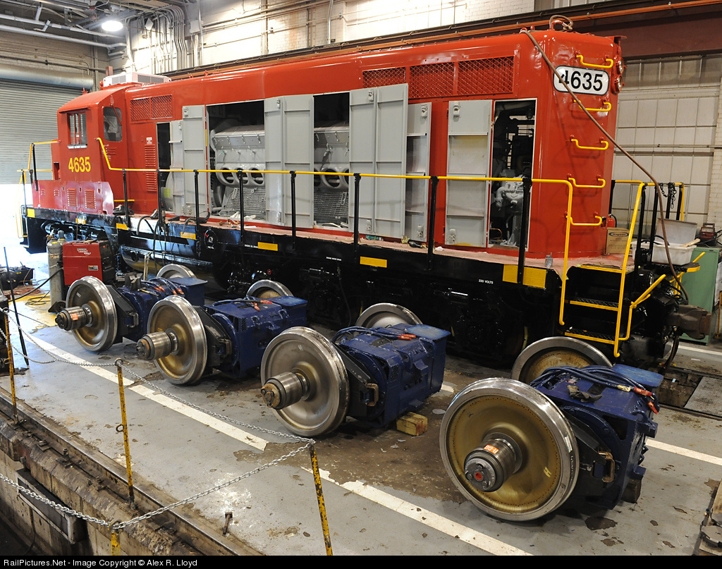 USAX 4635 in the DGRC shop getting worked on. The traction motors are for another GP that is in the shop.