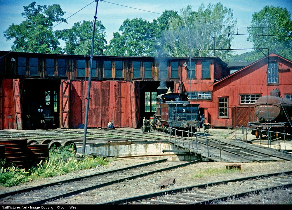 Ten wheeler No. 3, the movie queen, simmers outside the Jamestown roundhouse. This facility is now part of the California State Railroad Museum and looks about the same today as it did 50 plus years ago. Another one of those old Anscochromes saved by Photoshop.