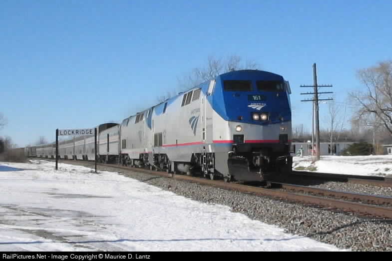 RailPictures.Net Photo: AMTK 161 Amtrak GE P42DC at Lockridge, Iowa by Maurice D. Lantz