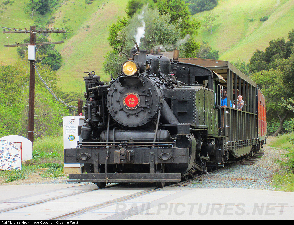 | Quincy Railroad #2, an Alco 2-6-2T steam locomotive, leads a Sunday excursion train through the Niles Canyon Railway's Brightside Yard crossing during a steam locomotive takeover weekend! |
