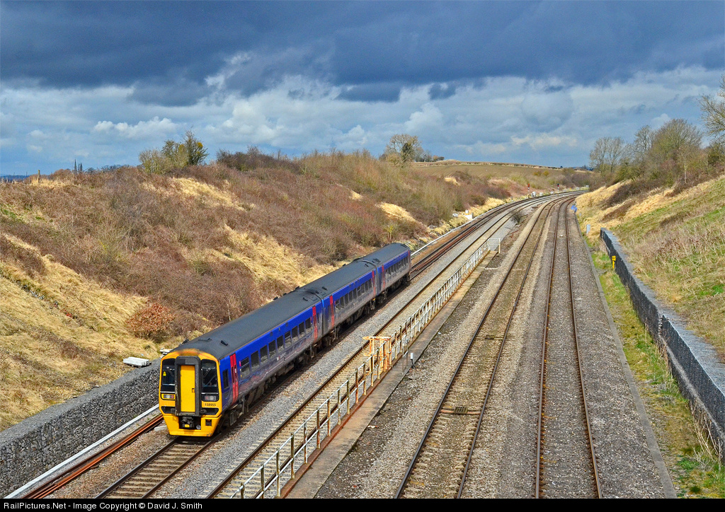 | The 08.59 Brighton to Great Malvern service races past Standish Junction,in a bid to complete its journey before the storm erupts.It didn't. |
