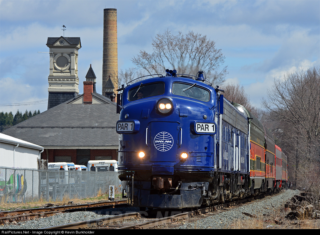 An High Iron Travel special excursion operated from Boston, Massachusetts to Mechanicville, New York on Saturday, April 13, utilizing Pan Am Railway's pair of FP9s - PAR-1 and PAR-2 - with Iowa Pacific Holdings-owned passenger equipment. The train heads past the Fitchburg Railroad Depot in Athol, MA.