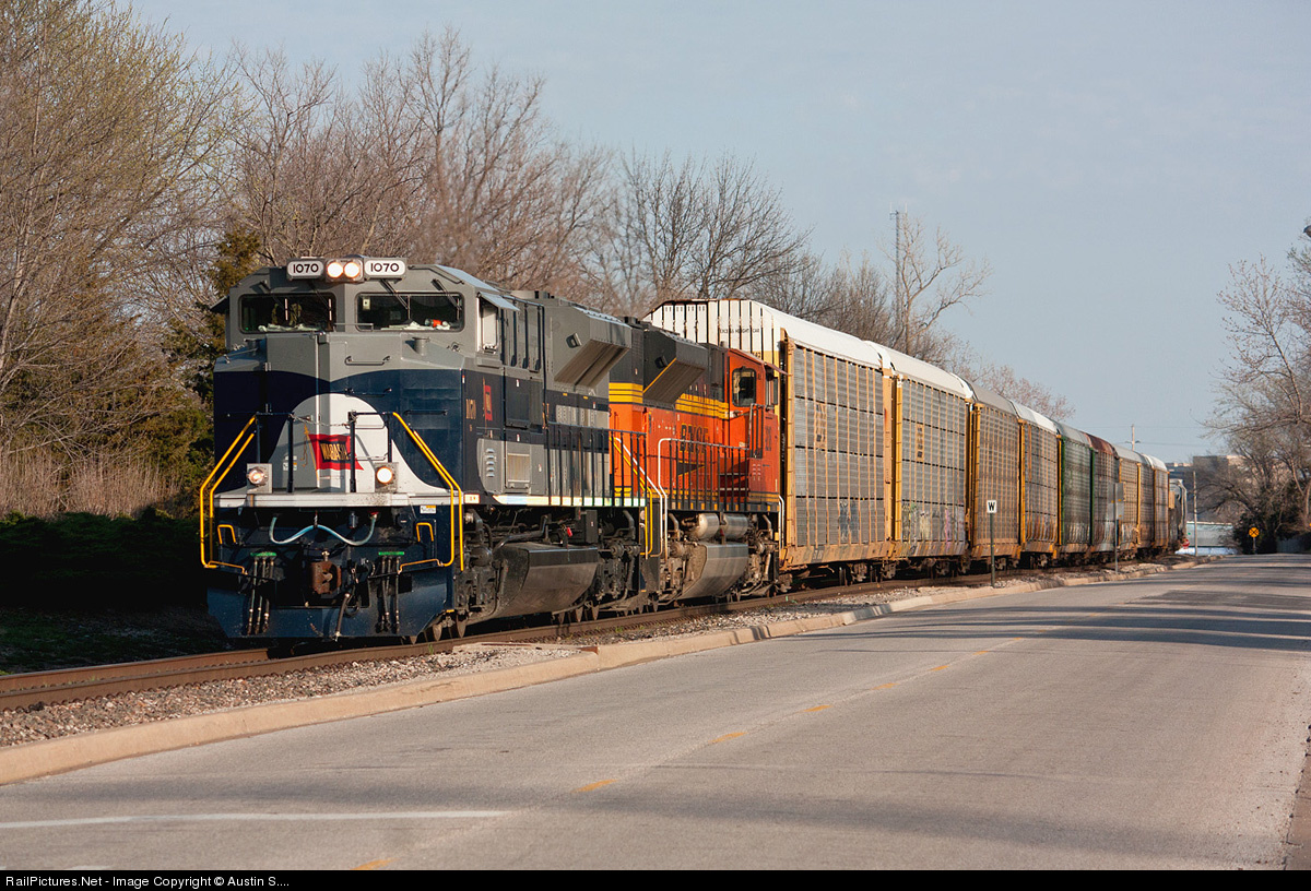 It seems like a quarter of the NS heritage fleet is on the BNSF system these days thanks to runthrough oil trains to/from the Bakken oil fields in North Dakota but occasionally one wanders off and finds its way to other places around the country. Witness this Birmingham, AL to Kansas City, KS vehicle train (with a total of 9 autoracks with a fill of manifest freight behind them) running down the connection from the Ft. Scott Subdivision to the Emporia Subdivision in Olathe, KS, just outside of Kansas City.