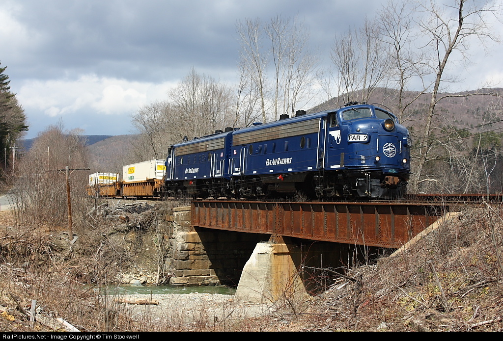 F-UNITS HAULING REVENUE FREIGHT IN 2013!: F-units were common power for freight trains on the Boston and Maine Railroad......in the 1950s! Today, a sight which hasn't been seen since the 1970s--and likely may not be seen again--occurred when F-units once again hauled revenue freight on the former B&M West End. After bringing the High Iron passenger excursion from Boston, MA to Mechanicville, NY on Saturday, Pan Am's two FP9As returned east on Sunday with a very short intermodal train for Ayer. Here the train is seen heading east through Charlemont, MA.