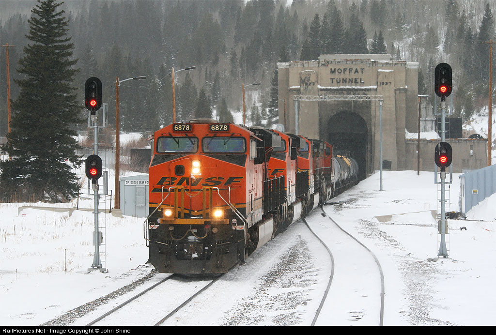 RailPictures.Net Photo: BNSF 6878 Burlington Northern Santa Fe GE ES44C4 at East Portal, Colorado by John Shine