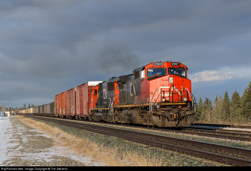 RailPictures.Net Photo: CN 2557 Canadian National Railway GE C44-9W (Dash 9-44CW) at Hinton, Alberta, Canada by Tim Stevens