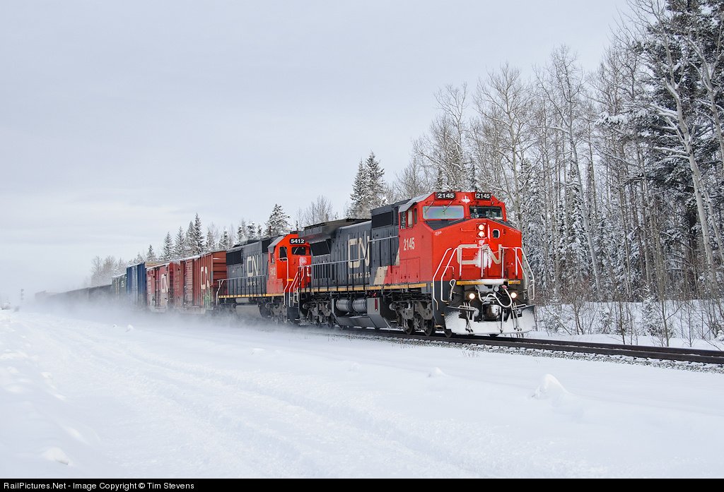 RailPictures.Net Photo: CN 2145 Canadian National Railway GE C40-8W (Dash 8-40CW) at Hargwen, Alberta, Canada by Tim Stevens
