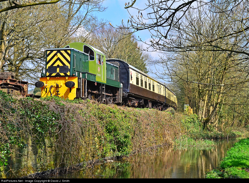 The class 14 diesel hydraulic locos were among the least successful designs of the early 1960s.Introduced in 1964 for light branch line freight and passenger workings,the locos were plagued with various problems,and all 56 of the class had been withdrawn by mid-1969.Fortunatley,the vast majority of them were sold off to industry,enabling preservation groups to purchase them for quite reasonable prices in later years.Here,D9521 is approaching St Marys Halt,on the Dean Forest Railway,with a Parkend to Lydney Junction working.