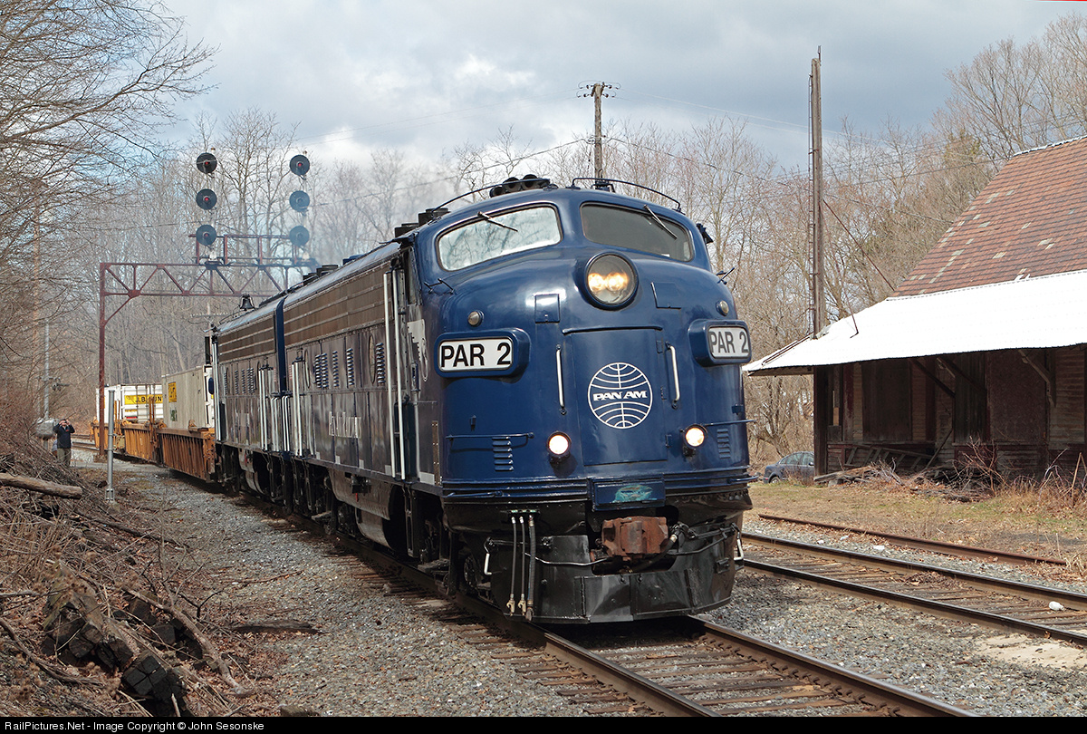 The famous Pan Am F unit intermodal move (shades of the ATSF Super C which ran short with F's...but faster) rounds the curve out of CPF-448 passing the old Eagle Bridge station. In the background, a classic set of searchlights protect the WB side of the interlocking. Searchlights, F's and stacks in 2013, not bad.