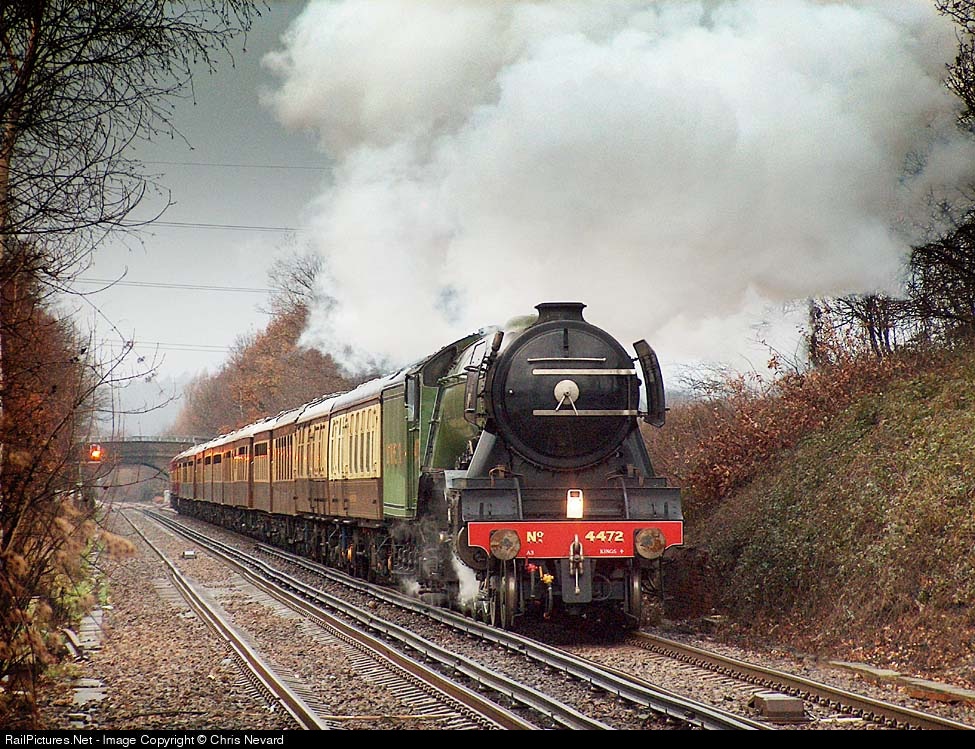 | 4472 passing Addlestone with the Christmas Lunch Special (Victoria-Guildford-Victoria) in typical dull wet Brit winter weather. |