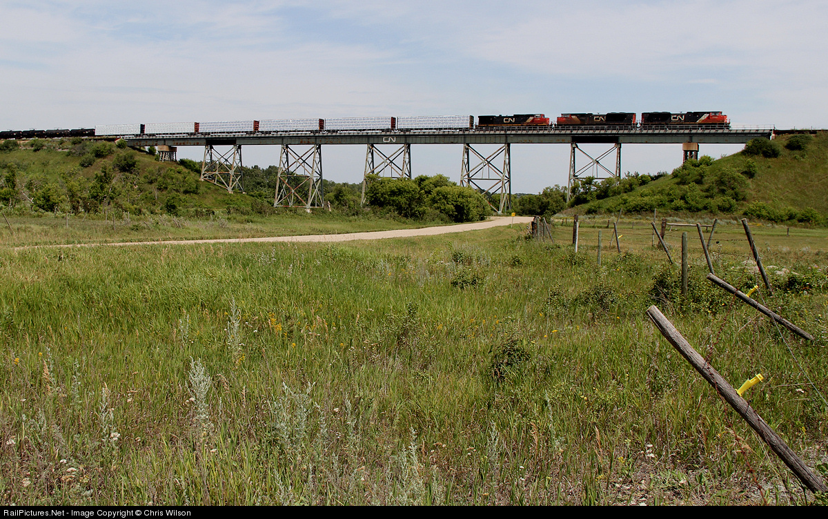 CN 312 eases across the Little Saskatchwan River trestle with Edmonton to Winnipeg freight