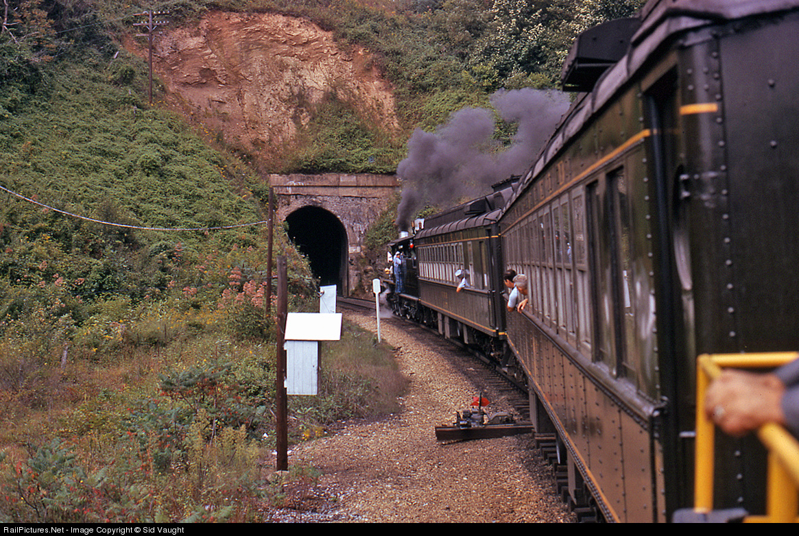 | The East Tennessee Railfan Association Special has just tacked on a gon and a caboose and has begun its return to Erwin on this rare steam-only fantrip. They are about to enter Vance Tunnel. Two cars could be added because it's all downhill from here. What happened to those 42 years? I got to fire a while on the way up. |
