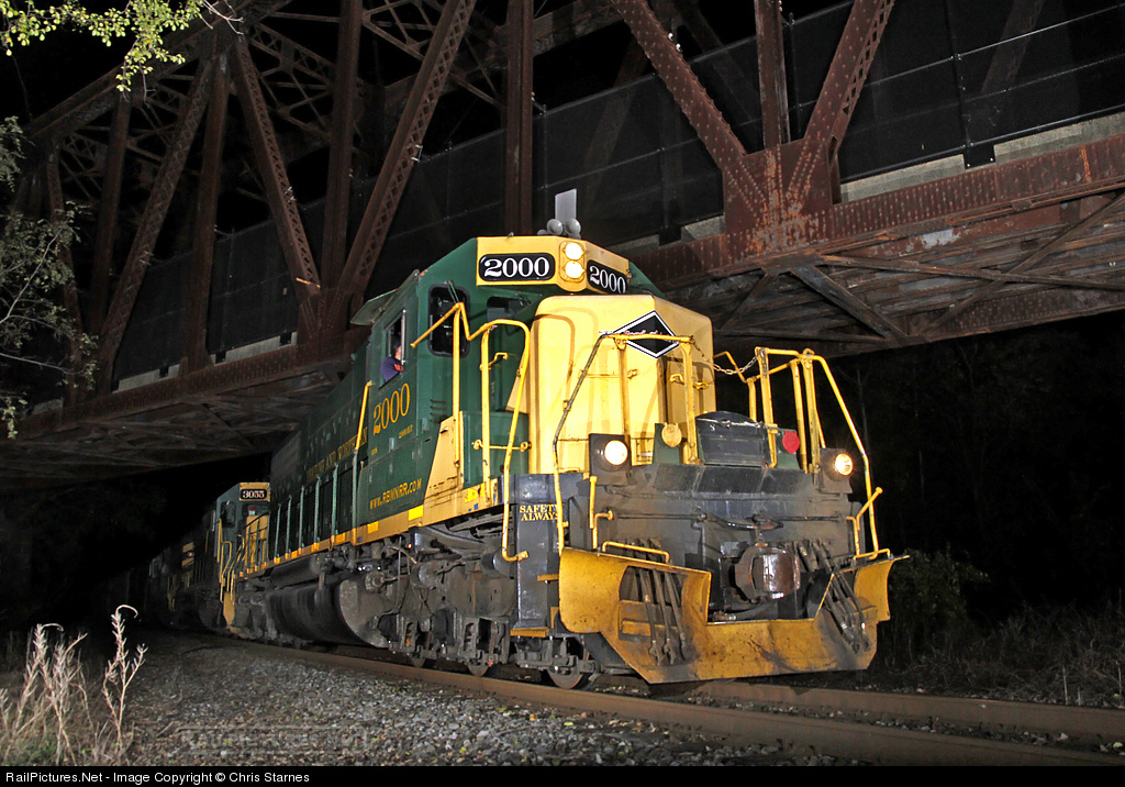 Engineer Mike Kohl and Conductor Kyle Sanders bring a trio of Reading & Northern EMDs led by SD38 #2000 and the southbound Reading Turn under the ex-PRR Schuylkill Valley Branch (now a bike path) at Hamburg. The Reading Turn collects outbound NS interchange traffic at Tamaqua and Port Clinton for the late evening run to Reading to interchange with NS before turning back north with inbound traffic. Thanks to Jeff Knadler for the assistance with this location/photo.