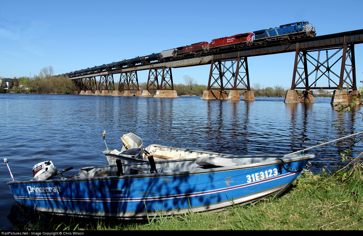 Albandy, NY - BRC Chicago Clearing, IL crude oil empties glide across the Trent River with CEFX 1018, CP 8816, CP 9509 on the point. The final destination for this train is on the BNSF at Trenton, ND!