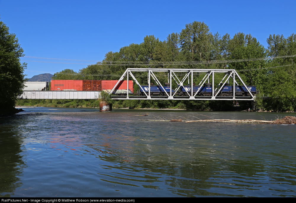 The Chilliwack turn rolls over the Vedder River on a Sunday morning as they travel east towards the CN interchange in Chilliwack.