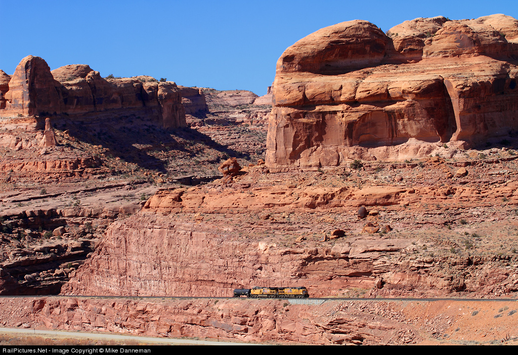 Little train in red rock country On March 4, 2012, Union Pacific’s Potash local heads back to the main line at Brendel, Utah, after setting out most of its cars at Potash, and is now taking back one lowly tank car picked up earlier at Brendel. The train is approaching the big fill and cut leading to Bootlegger Canyon.