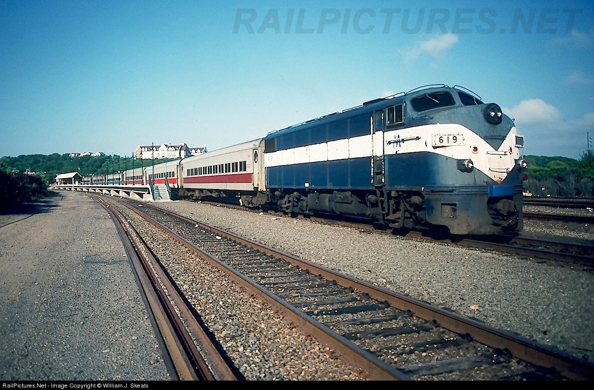 | The weekend has begun at Montauk. Early vacationers for the sun and surf take Friday only parlor car service train 2708 seen at the platform. GP38-2 274 is using the wye to change directions and will couple to the 619 and then head for the yard. The crew will take a taxi back. 619 is used as control cab / Hep and is ex Milkwaukee Road. |