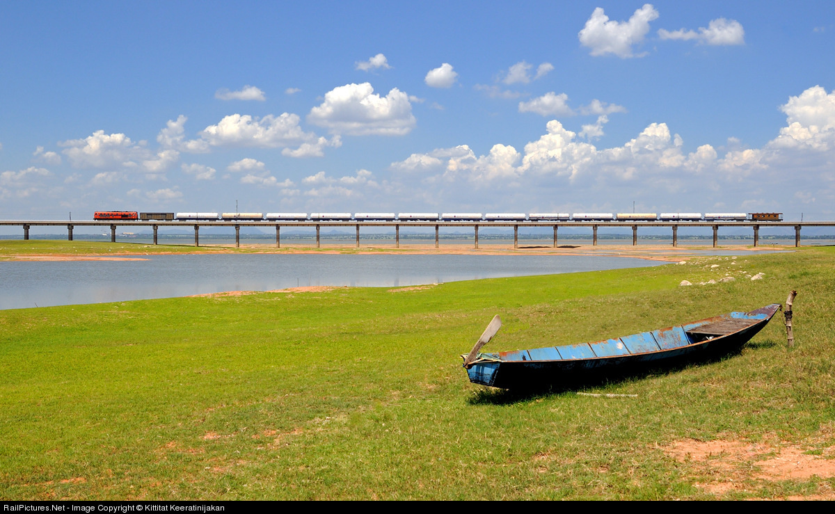 | Alsthom AD24C No.4131, with PTT liquefied petroleum gas train from Bang Lamung to Samran, while crossing the viaduct at Pa Sak Jolasid Dam. |