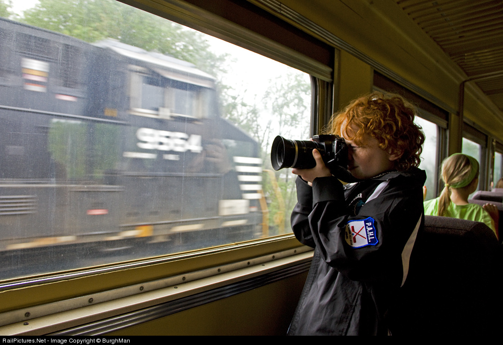 Onboard NS #28 during the employee appreciation special, Zack (a.k.a. Burghboy) gets ready to photograph a Norfolk Southern eastbound on the adjacent track.