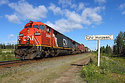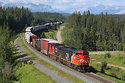 Eastbound Canadian National train No. 412 passes through Hargwen, Alberta, on the morning of July 20, 2011. Leading the train is a fairly recently repainted General Electric C40-8M No. 2400.