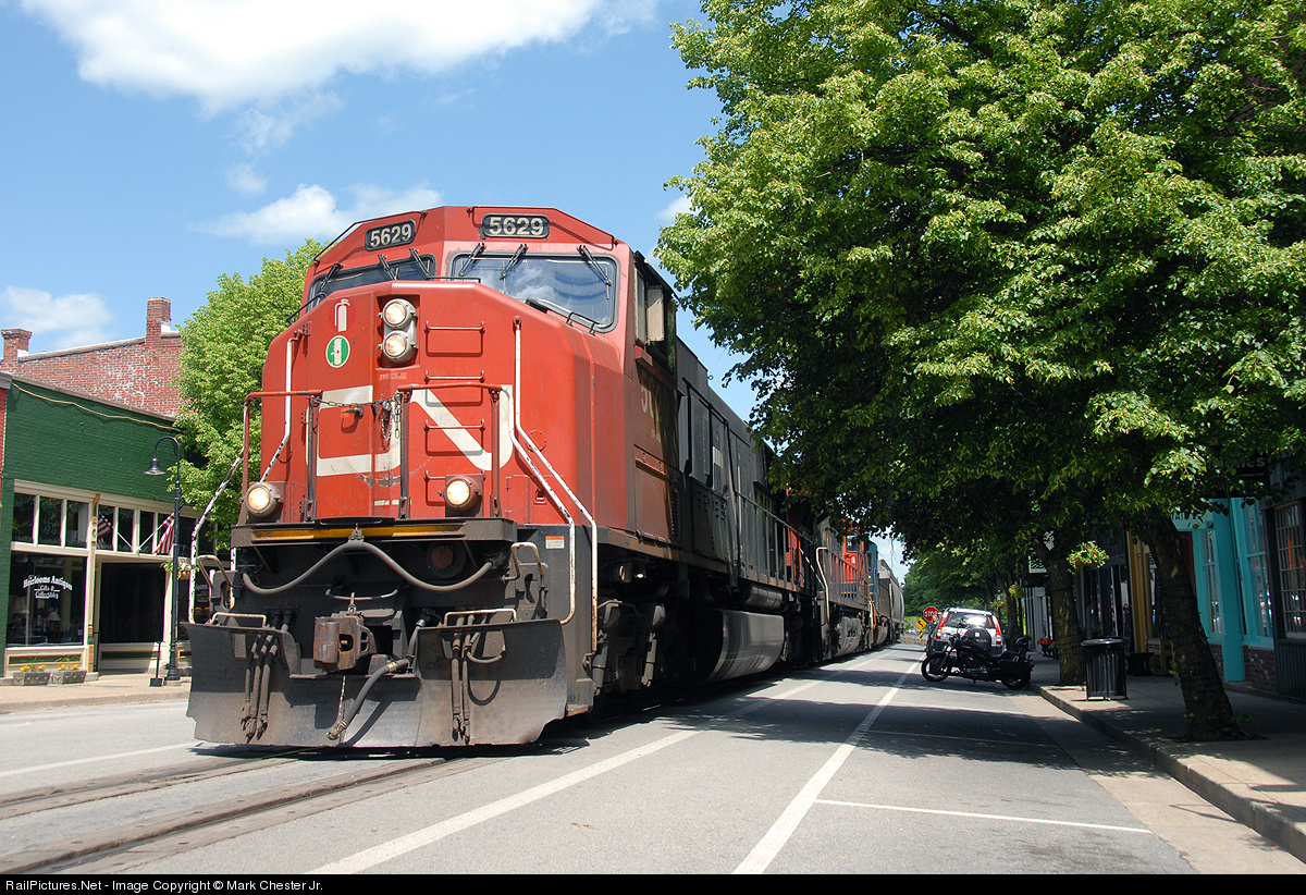 CN #5629 cruises down Main St in La Grange, KY with Q573-12 on Mother's Day.