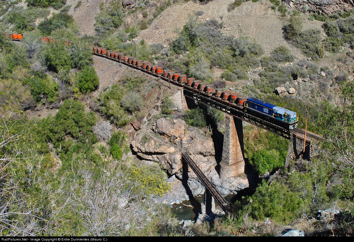 This train, known as "El Andino" down from the town of Saladillo loaded with copper concentrate, crossing a bridge on a gorgeous stretch very rough, and entering the show "Salto del Soldado," a beautiful rock formations thousands of years due to erosion the Aconcagua River.