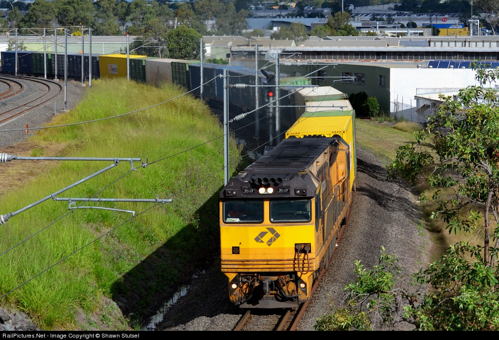 | Aurizon's 2847 powers through Sailsbury, Brisbane on the Dual Gauge with Y355, Intermodal/Container Service, heading Northwards... |