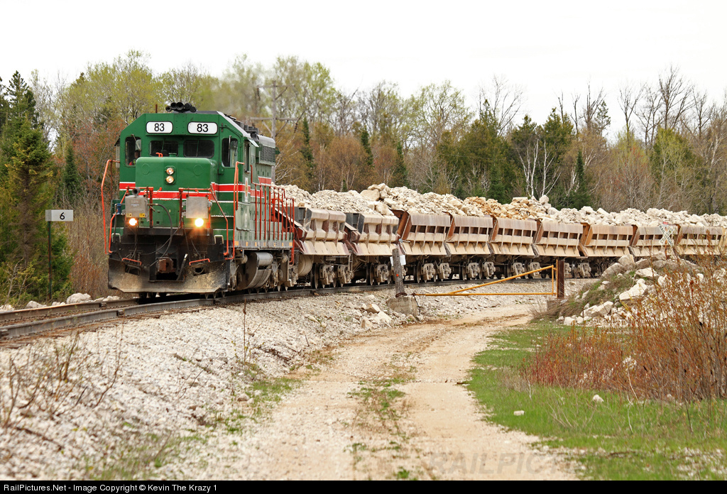 Ex-C&IM SD20 #83, now owend by Port Inland, takes another load of limestone 6 miles down to the Harbor.