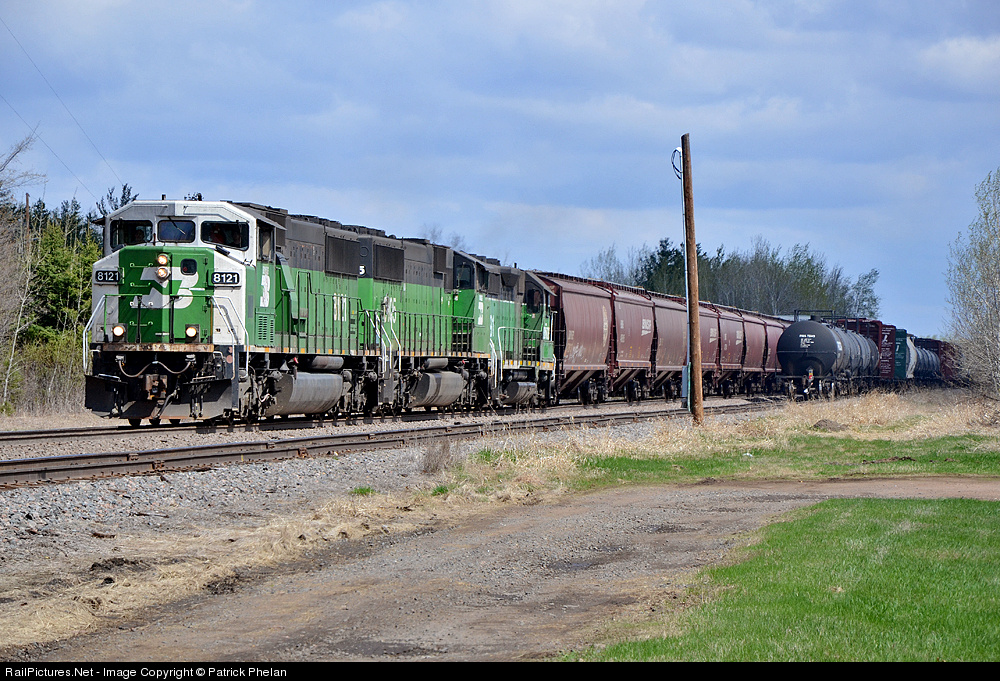 As we chased MILW 261 northbound on the Hinckley Sub, we found this interesting southbound to photograph. In a consist that would make you swear it was the mid-1990s, a trio of whiteface BN painted units head toward Minneapolis on a mixed freight from Superior, WI.