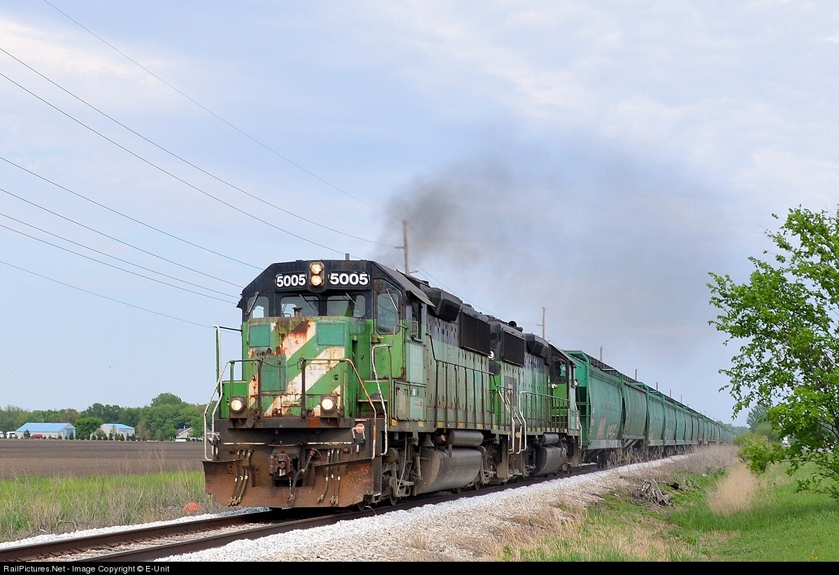 | Power continues to shuffle around after the G&W/RA merger. Here we see IORY 5005 and CBNS 5009 running as a reunited BN pair on the TPW. These will be repainted to GW/TPW match the other 2 GP50s recieved last month from CIND. |