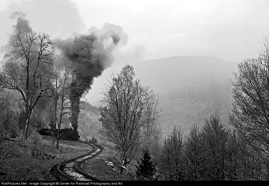 During an early railfan weekend, Cass Scenic Railroad Shays 4 and 5 lead a train up Cass Hill through Gum Curve on May 16, 1975. Photograph by Fred M. Springer and courtesy of the Center for Railroad Photography & Art. For more information on the Center, click here.