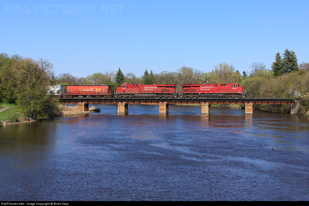 | Canadian Pacific train #290 travels over the most scenic area in Thief River Falls, which includes anywhere along the Red Lake River. I would imagine that it's a nice day for the engineer to have his arm resting on the open window enjoying the view! |