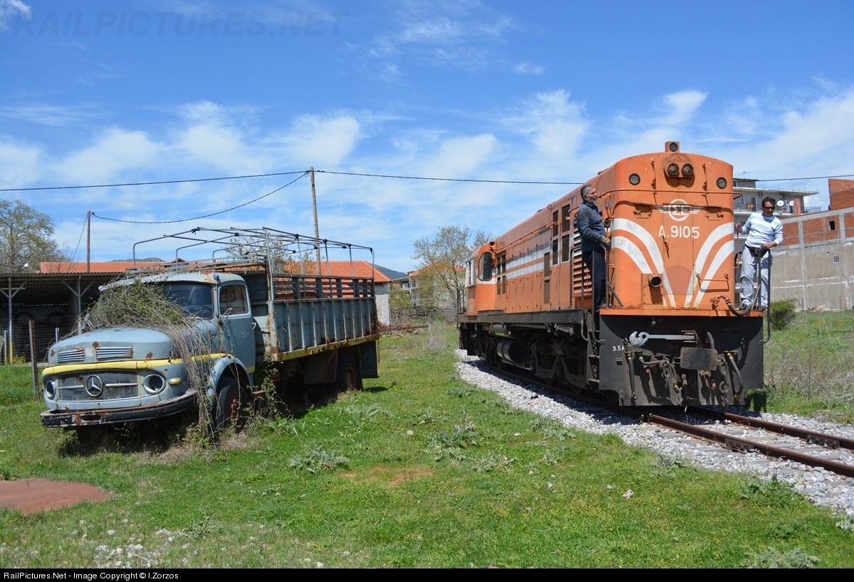 | After a mechanical problem on rebuilt ALCO A 9101 during railfan excursion train A 9105 has to go ahead, so Tripoli's triange has to be used again after som years... On the left, an OSE old Mercedes-Benz Truck. |