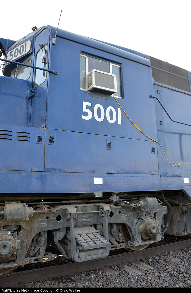 It blocks the view, but it keeps the cab cool ... Rail Switching Service GP30 5001, on lease to Scoular Grain in Fremont, Nebraska (since 2002), features an unusual air conditioner location. This is one of only two GP30s every built by GMD in Canada - it was originally Canadian Pacific 8201, later renumbered to CP 5001 before being sold to RSSX.