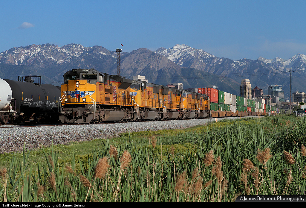 UP's priority Los Angeles to Chicago Z-train arrives for a crew change at North Yard in Salt Lake City. The ZLAAH runs six days per week between the City of Angels and Norfolk Southern's Ashland Avenue yard in Chicago. It was fun to catch an all EMD '70' series consist on the head end.